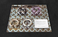 I designed base toppers for a Holiday in-case fixture program to emulate the real selenite stone David Yurman uses for their window displays. Due to material constraints, it is impossible to cut thin, uniform layers of selenite. To get around this I devised a way to create synthetic selenite by taking an image of selenite, isolating different layers within the image, then printing the different layers throughout a piece of clear plastic vinyl to create a visual effect similar to real selenite. These thin acrylic panels were then placed onto the already existing fixture program. This method was tested, approved, and implemented across all stores worldwide.
